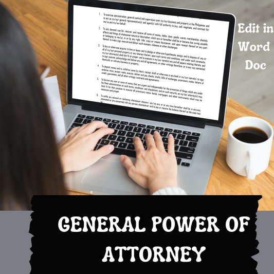 General Power of Attorney | Editable Template in Word Document | Easy to use - Contract Power of Attorney (POA) | Legal Customized Downloads | Easy to Use - Drafted by an Attorney |