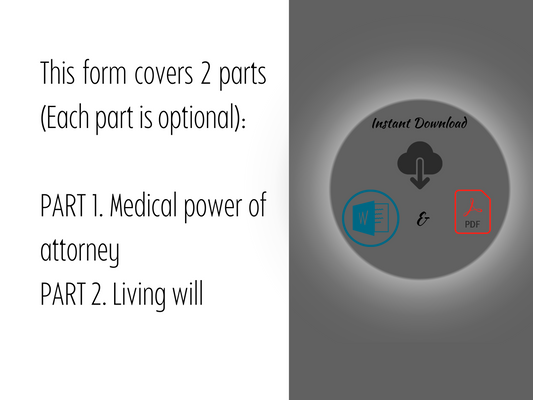 Advance Directive Form (Medical POA + Living Will) | Editable in Word and PDF Template | Legal Customized Downloads | Easy to Use - Drafted by an Attorney |